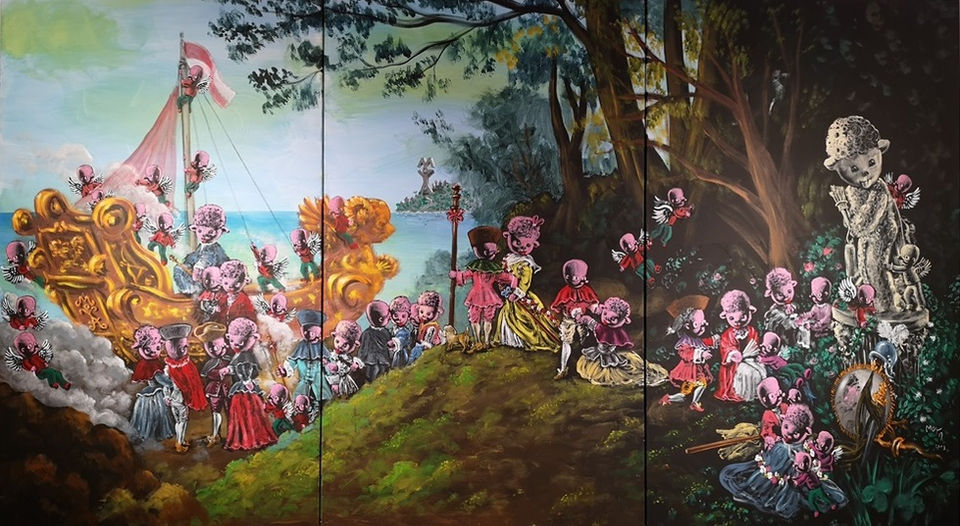 Aussi bien que dans son Moya Land virtuel et pourtant bien réel. On trouve ses œuvres dans plusieurs collections publiques : une monumentale sculpture en acier de 8 mètres (musée de Kaohsiung, à Taiwan, 1991), deux sculptures et une grande toile (Mamac de Nice, 1996), deux grandes sculptures dans un parc (ville de Cap d’Ail, 2008), un cadran solaire (Coaraze, 2008), deux toiles sur le thème du cirque (famille princière de Monaco, 2009), une grande sculpture en résine (ville de Cannes, 2011 ou Beuil, 2021), une toile de quatre mètres sur le thème du Moya Circus (Ville de St Raphaël, 2013), une grande sculpture « Dolly » (six mètres de haut) à Busan (Corée du sud, 2013), une toile sur le thème de la Transhumance (St Etienne de Tinée, 2015), une stèle funéraire pour les Tout petits (Nice, 2015), une toile intitulée « Moyalisa » (Joconde) pour le musée d’art ancien et contemporain d’Epinal (2018), une grande toile dans un hôpital (Pasteur 2 à Nice)… Et, en 2021, un panneau de la Collection Moya (c’était le titre de la salle du Musée Masséna peinte in situ par l’artiste sur le thème du cabinet de curiosité, dans le cadre d’un hommage à Jean Ferrero), a été acheté par la Ville de Nice … En pionnier des univers virtuels, il utilise aujourd’hui de manière optimum toutes les incroyables ressources de ce métavers mondialisé : construction d’un musée idéal, puis, à la manière d’un urbaniste, d’une véritable ville, ce qui lui offre l’opportunité de faire des visites guidées (en voiture ou avion virtuels) pour montrer tout l’éventail de son travail; participation à d’innombrables expositions, vernissages, conférences, interview… et opportunité de rencontres sans limite (communication facile grâce au traducteur automatique en toutes les langues)… Mais aussi, réalisation de maquette 3D pour préparer une exposition puis conservation de cet événement revisitable à l’infini. Sans oublier les nouvelles possibilités de transformer en volume et d’animer des personnages à l’origine en dessins ou peintures (grâce à l’aide de « builders » spécialisés de SL, 2021) …