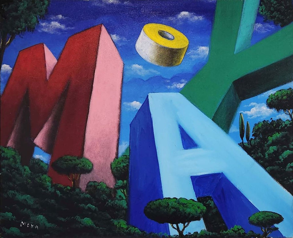 Après ce long épisode où il joue le rôle de Narcisse se mirant dans le regard des autres, il commence véritablement son œuvre en travaillant sur les lettres de son nom, M O Y A, assimilant l’œuvre à sa signature durant sa période Néo- Lettriste (1981), avant de s'inventer un alter ego, son petit « moya », autoportrait caricatural inspiré de Pinocchio (1997) qui lui permet dès lors d'exister dans son œuvre. En 1998, il entre à la galerie Ferrero, connue pour défendre à Nice le mouvement artistique Ecole de Nice. Son œuvre devient prolifique, un univers personnel se dessine peu à peu, un bestiaire presque humain, réjouissant de drôlerie et de poésie, qui se tient debout en regardant le spectateur : en 1999, apparaît « Dolly », une brebis malicieuse conçue comme l'identité visuelle des soirées techno Dolly Party et qui deviendra un des personnages principaux de son « Moya Land ». En juin 2007, il termine, après quatre ans de travail, la fresque murale d'une chapelle qui porte désormais son nom à Clans (village du moyen pays niçois), tandis qu’en 2020, est inaugurée une « Nouvelle Chapelle Moya », peinte du sol au plafond en quelques semaines, pour le petit village du Mas (haut pays grassois).